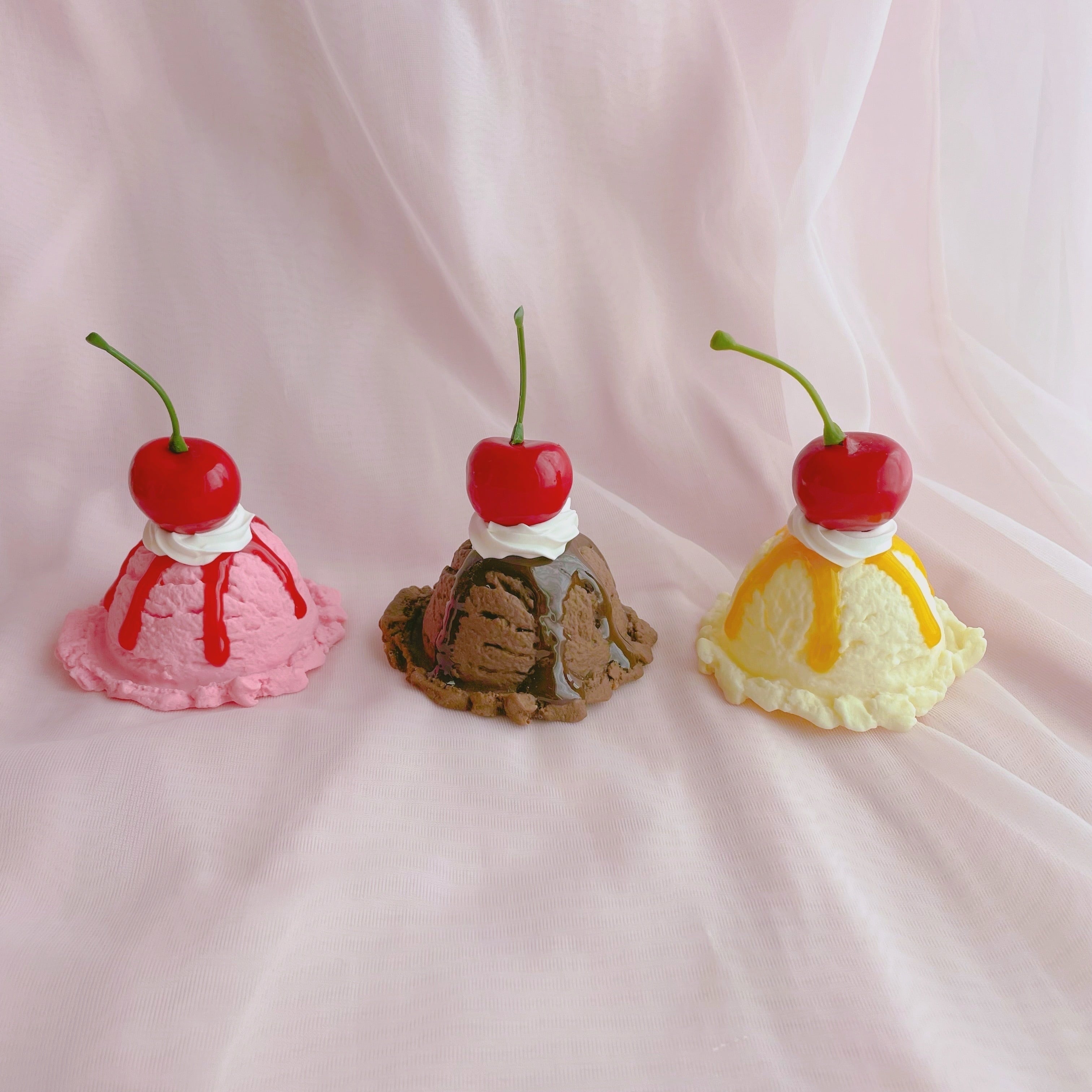 ホイップとチェリーが乗ったアイスクリームの上の部分のみの置き物です。