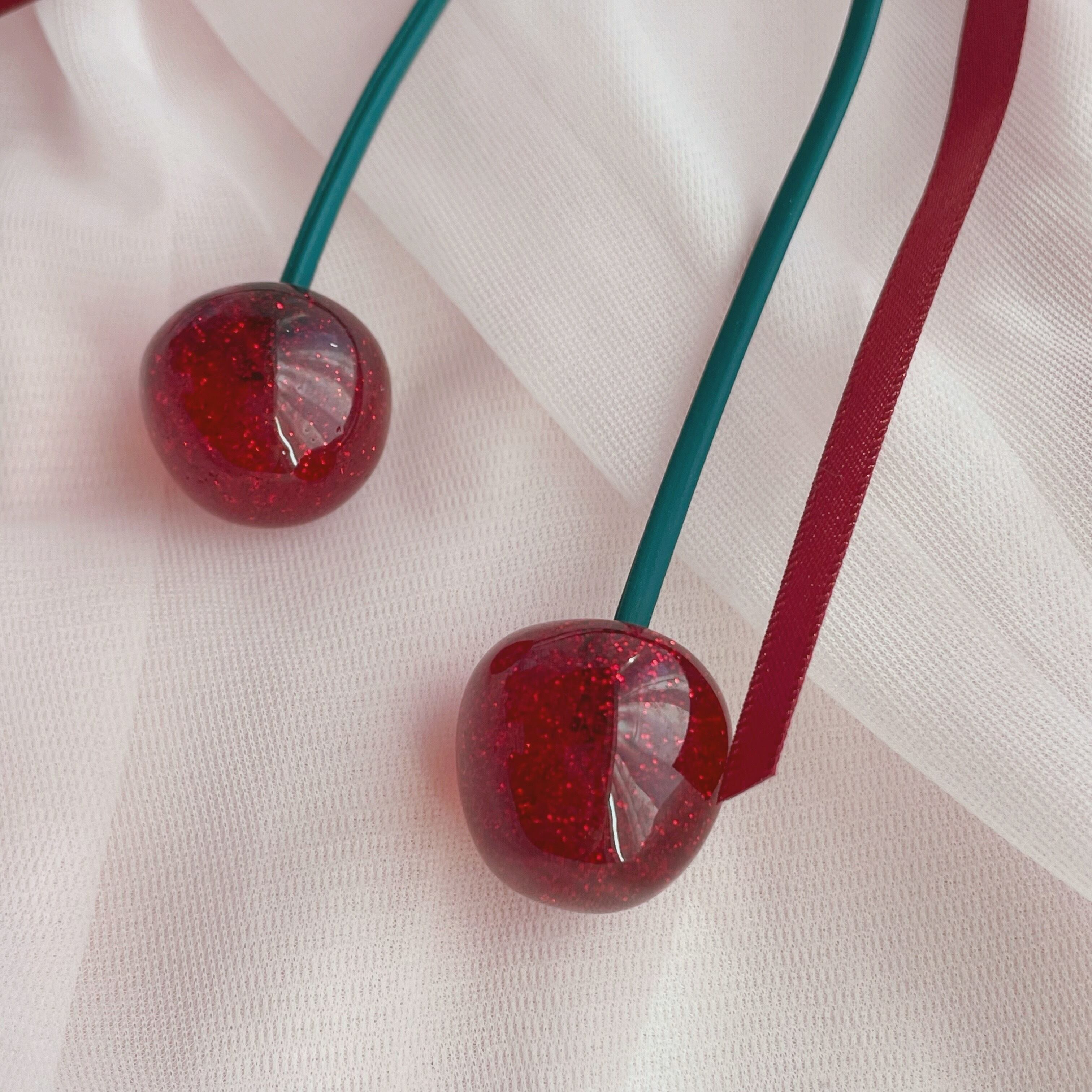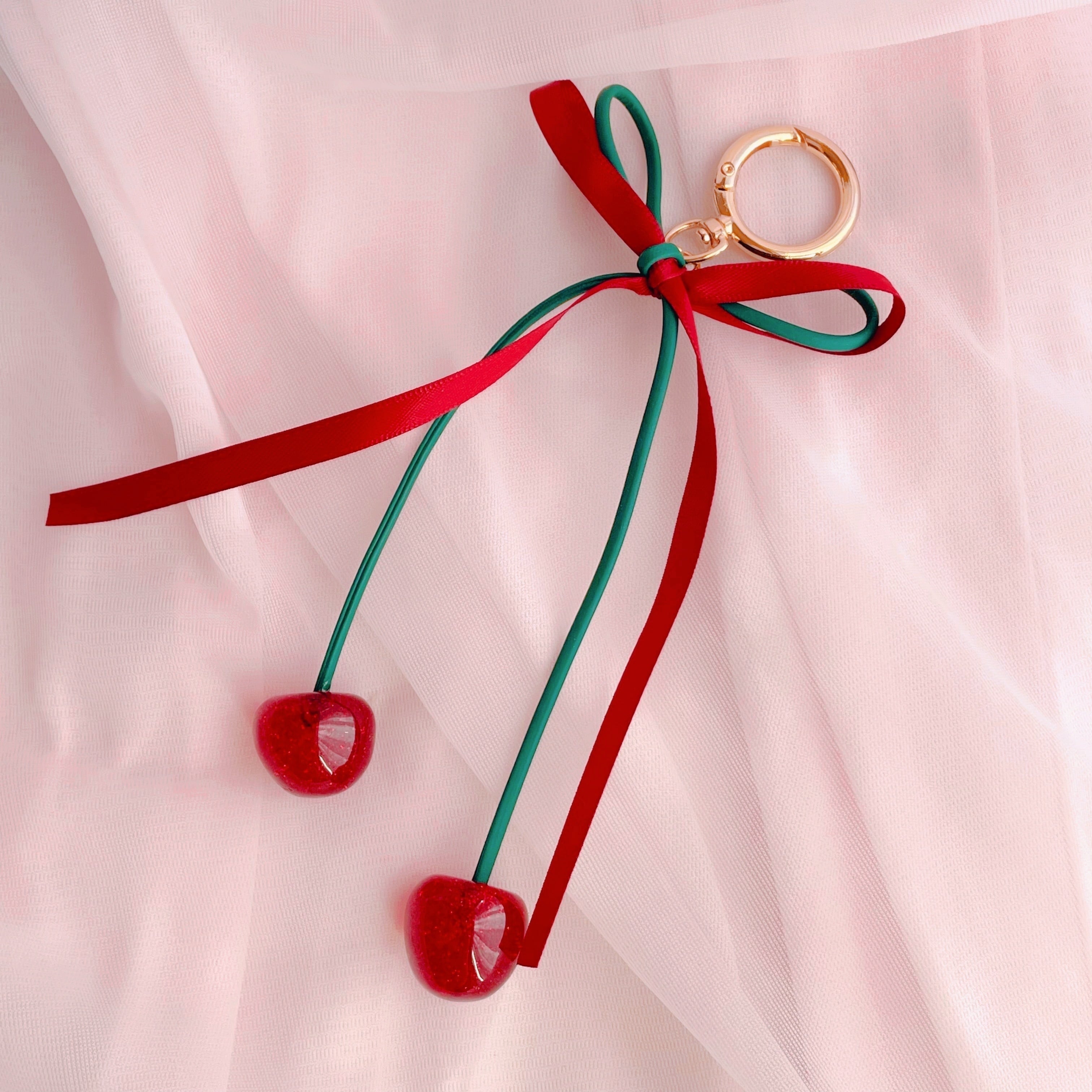 グリッターがかったチェリーの実がかわいいキーホルダーです。